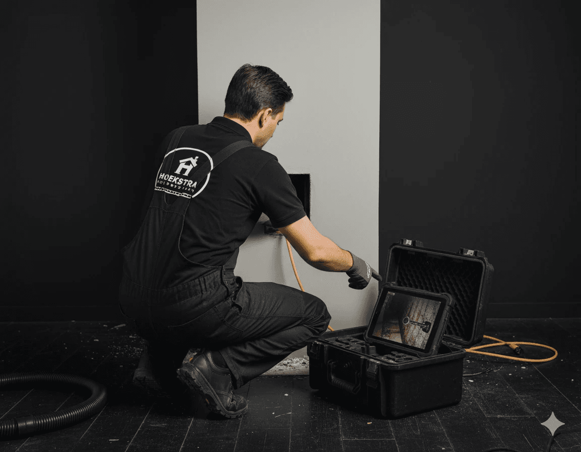 Hoekstra Schoorsteen combineert de inspectie altijd met een volledige veegbeurt. Zo is het kanaal vrij van roet en aanslag en kunnen de beelden nauwkeurig worden beoordeeld. De bevindingen worden verwerkt in een keuringsrapport voor verzekeringsdoeleinden of als bewijs bij verkoop of verbouwing van een woning.