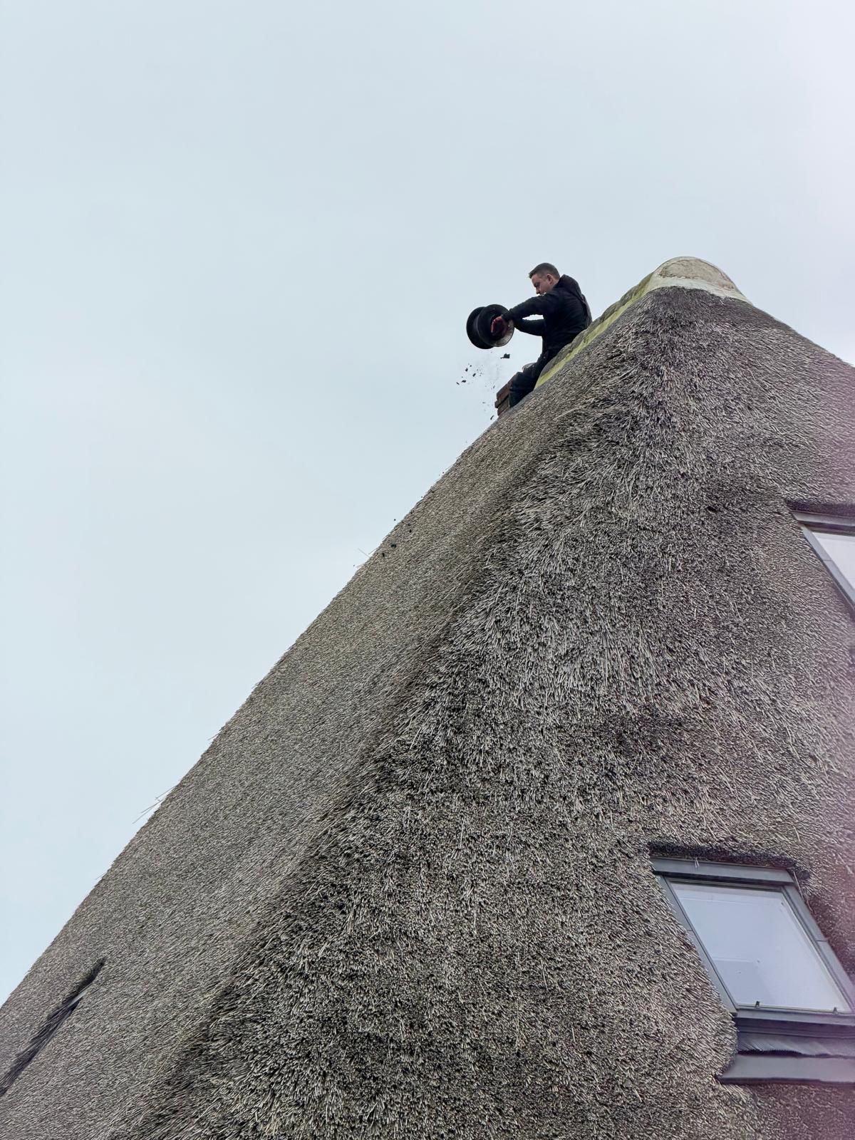 Bij rieten daken is een goed onderhouden en correct geplaatste vonkenvanger essentieel vanwege het verhoogde risico op vliegvonken en brand, en omdat verzekeraars vaak naar controle vragen bij eventuele schade. Daarom is het verstandig om de vonkenvanger periodiek te laten inspecteren en waar nodig te onderhouden. Lees verder op onze pagina over vonkenvanger controle.